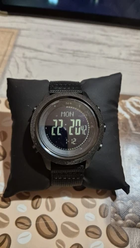 The watch is built with a stainless steel case, hardened mineral glass, and a reinforced nylon strap, making it highly resistant to shocks, scratches, and tough outdoor conditions.